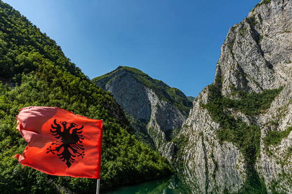 Je prends un bus pour rentrer, afin d'éviter 40 km de mauvaise piste un ferry descend le lac Koman aux allures de fjord.