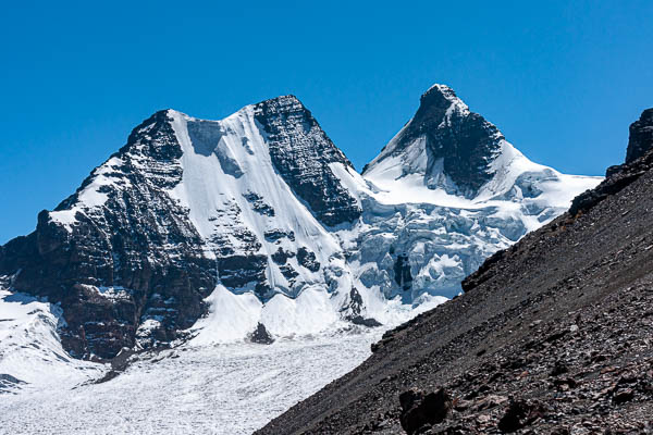 Le jour suivant nous montons vers le Condoriri le long du lac. Nous parvenons vers 4900 m à un deuxième lac dans lequel se jettent de majestueux glaciers.