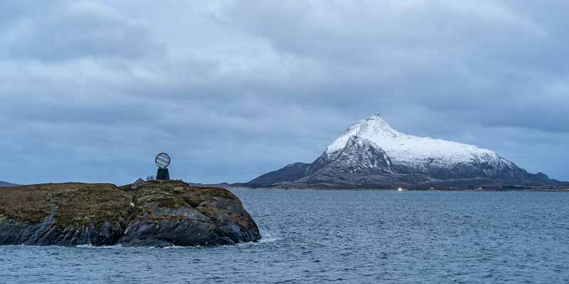 Cette fois le passage du cercle polaire a lieu de jour, il est matérialisé sur l'îlot Vikingen par un globe métallique.