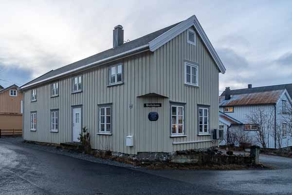 Brønnøysund : maison ancienne en bois, caisse d'épargne