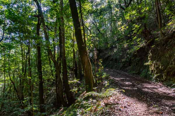D'emblée il y a un tunnel de 1,5 km où je dois tâtonner près d'une demi-heure sur l'étroite banquette ménagée le long du canal. Il y en aura d'autres, sinon le parcours dans la laurisylve est agréable.