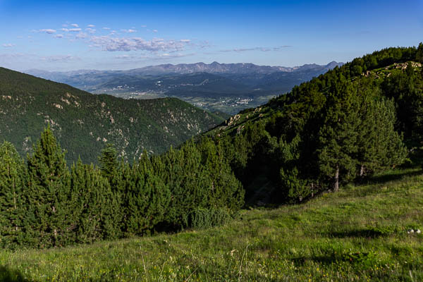 Jour 39 : Le parcours commence par une courte descente puis remonte au col Mitja, la vue est dégagée vers la Cerdagne et au loin le pic Carlit.