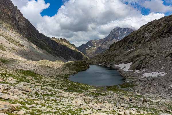 Jour 27 : Météo bizarre, beaucoup de nuages menaçants mais l'orage n'éclate pas. Je remonte le rio Ara, la cabane de Labassa permettrait de s'abriter en cas de besoin à condition de nourrir la gardienne. La bifurcation vers les lacs de Batanes est l'occasion de s'entraîner au franchissement de torrents rendus furieux par les abondantes précipitations des jours précédents. Le Vignemale n'est pas aussi impressionnant que depuis les Oulettes mais reste une belle montagne. Après le col je laisse les lacs supérieurs de Brazato en traversant à gauche sur de gros blocs avant d'entamer la descente sur le lac de barrage homonyme. Un bon sentier parvient ensuite à la station thermale de Panticosa.
