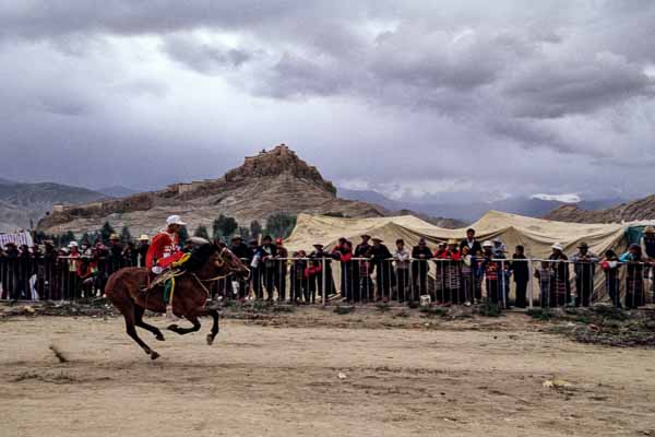 L'après-midi est consacré aux courses de chevaux, les Tibétains sont des cavaliers émérites et se passionnent pour ce sport.