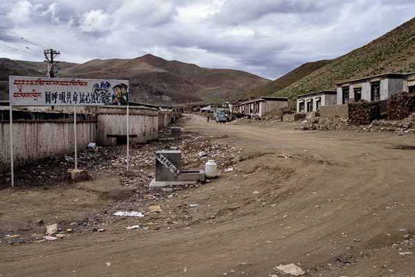 Au hasard des rues on peut voir des pancartes de propagande tâchant de convaincre la population tibétaine que les Chinois sont là pour l'aider.