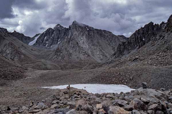 La descente est sans problème, agrémentée de quelques névés. Nous campons dans la vallée à 4775 m.